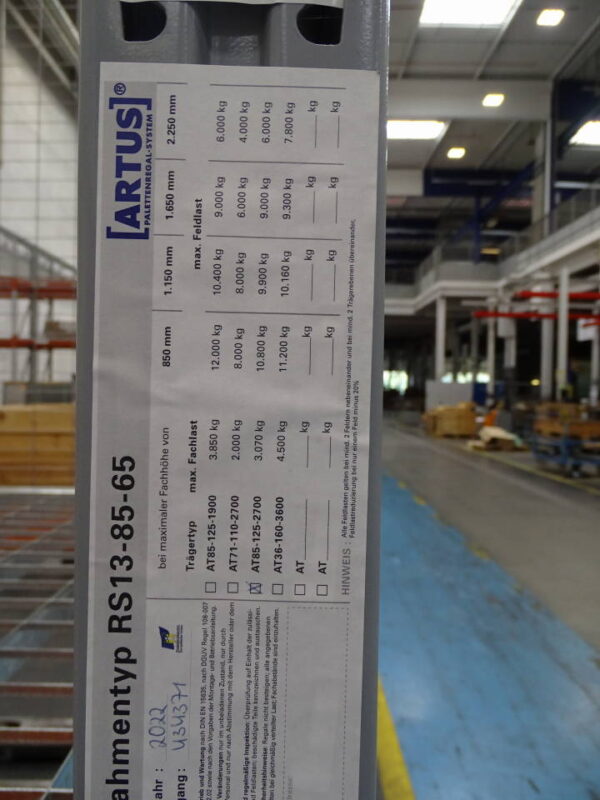 ARTUS RS 13-85-85 Schwerlastregal / Palettenregal