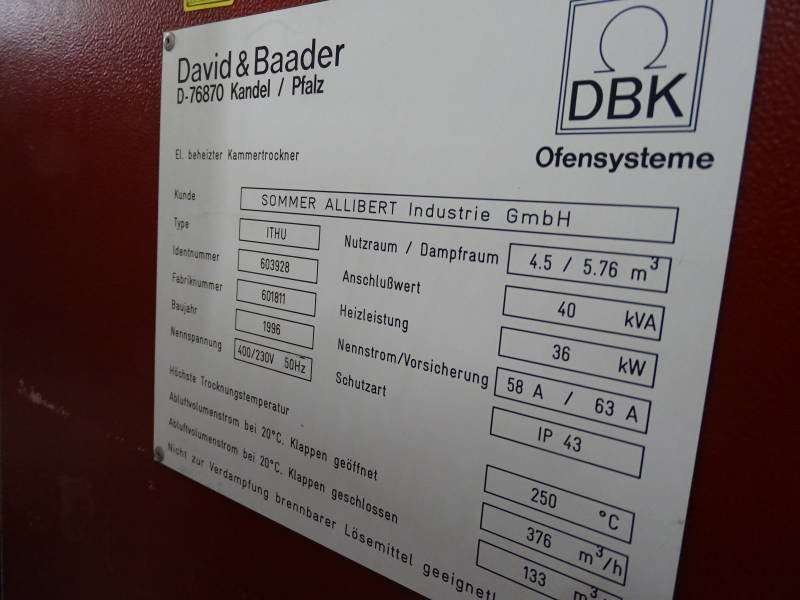 Umluftofen DAVID+BAADER IHTU, Nutzraum 4,5 m³, SN 603928, Baujahr 1996, Trocknungstemperatur 250 °C