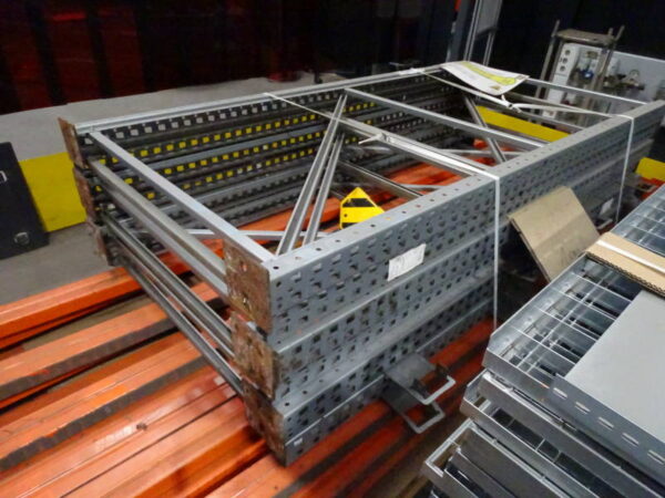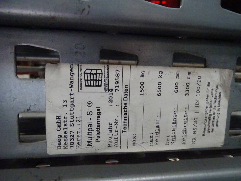 DEEG Multipal-S Schwerlastregal mit Ständerhöhe: 220 cm | Ständerbreite: 110 cm | Traversenlänge: 330 cm | Baujahr 2014, demontiert, 6 Ständer, 30 Traversen| Felder: 5 | Ebenen: 6 | max. Fachlast: 1500 kg | max. Feldlast: 6500 kg | Farbe: silber, orange | Zubehör: