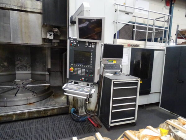 DÖRRIES (Starrag Heckert), Baujahr: 2013, Serien-Nr.: 3V-800552, Umlaufdurchmesser 2.000 mm, Drehhöhe 2.150 mm, X-Achse 1.150 mm, Rundtisch Durchmesser 1.800 mm, Späneförderer, 25-fach Werkzeugwechsler, Vliesfilterreinigungsanlage, Kühlanlage, CNC Siemens Sinumerik 840D SL, Arbeitsplatz 0510