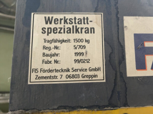 FIS Portalkran , Traglast 1,500 kg, Grundfläche 220×270 cm, Bauhöhe 410 cm, SN 99/0212, Baujahr 1999