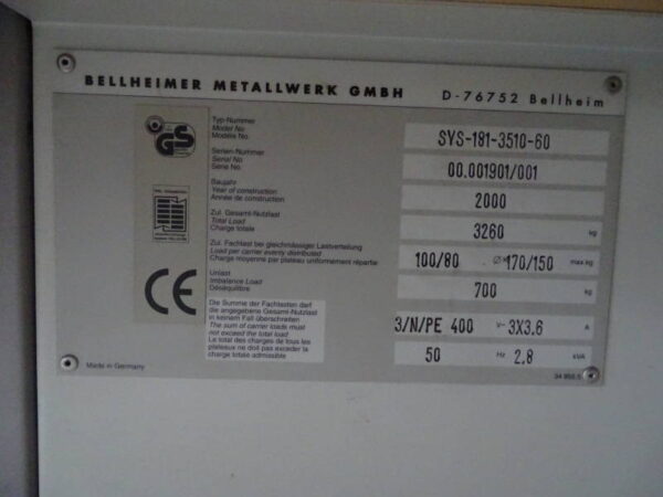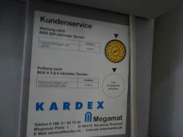 KARDEX SYS-181-3510-60 Paternosterregal | Baujahr: 2000, Serien-Nr.: 00.0019001/001, Nutzlast 3.260 kg, Shuttlebreite 320 cm, Tablar-Tiefe 62 cm, Aufbauhöhe ca. 650 cm, Aufstellfläche 339 x 194 cm