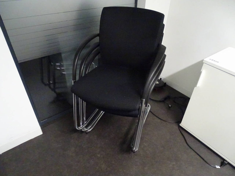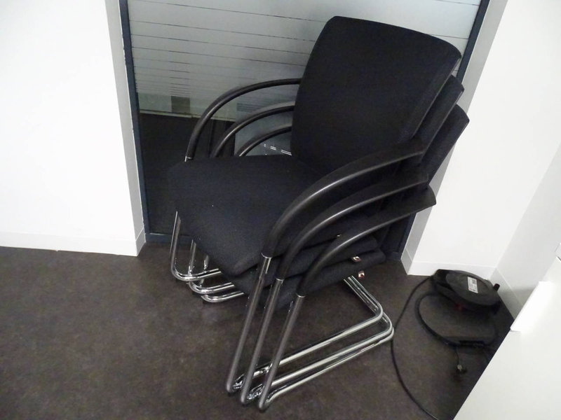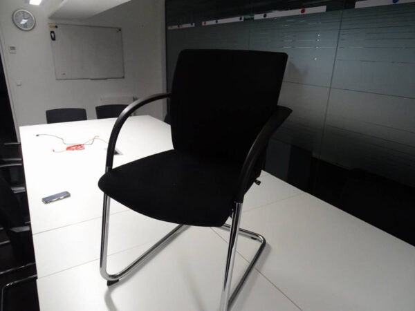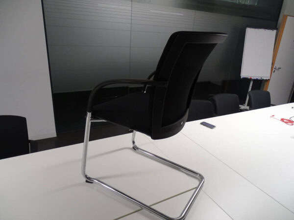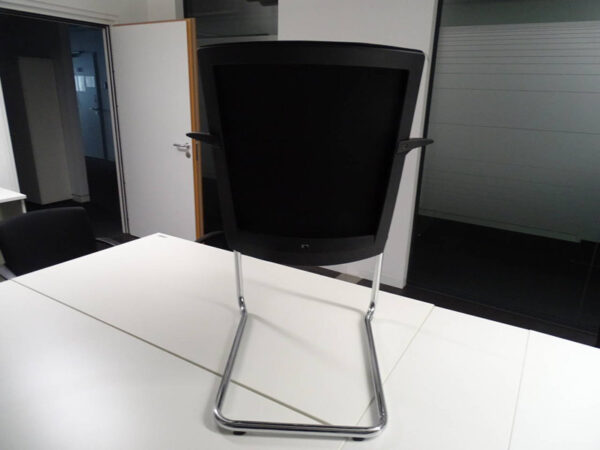 KÖNIG & NEURATH Freischwinger Bepsrechungsstuhl Besucherstuhl | Polsterbezug schwarz | Armlehnen | Gestell edelstahloptik | Modell OZBFNSP2E Konfiguration 1662-1662-GC | Baujahr 2015/2016 | stapelbar