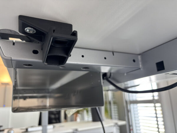 KÖNIG & NEURATH Talo.S, elektrisch höhenverstellbarer Schreibtisch | Gestell grau | Tischplatte lichtgrau | Bedieneinheit mit Memoryfunktion und Höhendisplay | Bedieneinheit unter dem Tisch versenkbar / herausziehbar |mit Kabelkanal