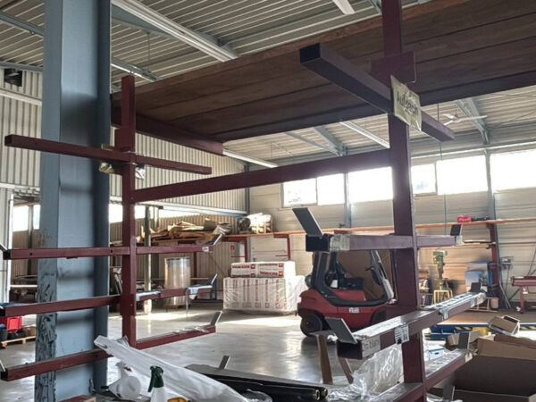 Kragarmregal, fahrbar, Maße(LxBxH): 160x130x270cm, Kragarmregal, Stahl, rot/dunkelrot lackiert, ohne Inhalt