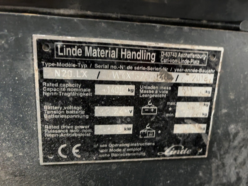 LINDE N20LX Kommissionierstapler , Tragkraft 1.400 kg, Baujahr 2013, SN W4X132D01394