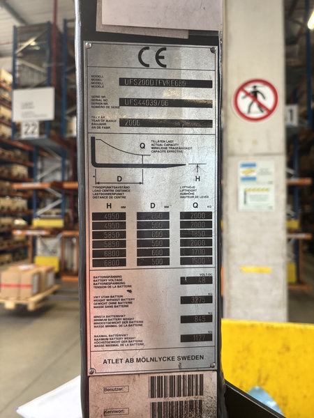 LINDE UFS2000 TFVRE680 Elektro-Schubmaststapler, Vierwegstapler | Betriebsstunden: Baujahr 2006 | Model : UFS200DTFVRE680 Sn.: UFS44039/06 | Tragkraft : 2000 Kg | Batterietyp: Aquamatic Typ. :4 HPZS 620 ../..Baujahr: 20.06.2013, 48V – 620 Ah – 24 Zellen | Ladegerät: Eurotron Sn. Nr. 3343498 48V / 150A