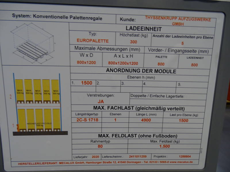 MECALUX Schwerlastregal / Palettenregal als Doppelregal