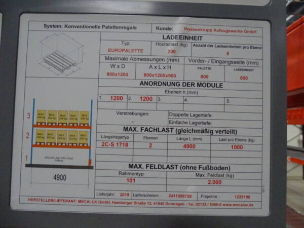 MECALUX Schwerlastregal / Palettenregal als Doppelregal