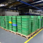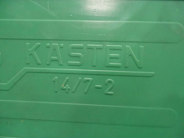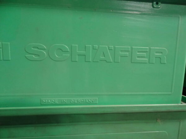 Palette á 32 Stück, SCHÄFER, Größe II, 14/7-2, Farbe: grün, gesamt ca. 3.000 Stück, Volumen: 23 Liter, Gewicht: 1,55 kg, Temperaturbeständigkeit: -20 bis +80 Grad, Außenabmessungen: Länge 510 mm, Breite 320 mm, Höhe 200 mm