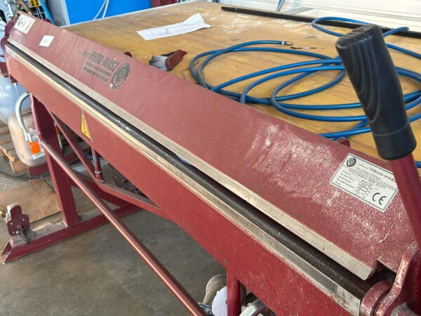 PROD-MASZ RED-2m/0.8 Schwenkbiegemaschine, Maße(LxBxH): 245x80x110cm, Schwenkbiegemaschine / Abkantbank, Arbeitsbreite ca. 214 cm, Blechstaerke bis 0.8mm, manueller Hebelbetrieb, auf Rollen fahrbar