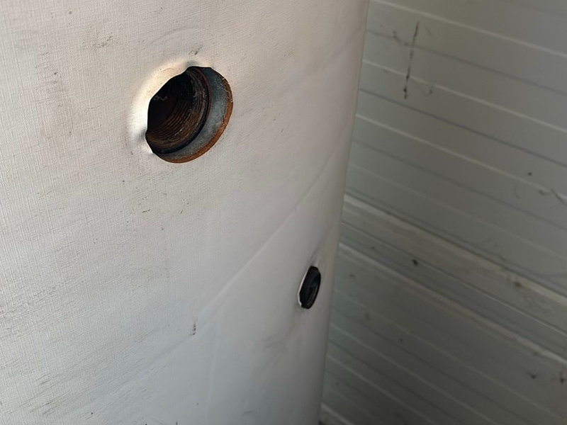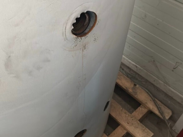 Pufferspeicher 1000 Liter, Pufferspeicher, ca. 1000 Liter, mehrere Muffen/Anschlüsse seitlich, mit Isolierung, Durchmesser ca. 80 cm, Höhe ca. 180 cm