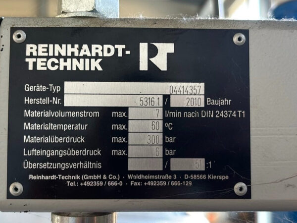 Reinhardt-Technik 04414357 Fasspumpe / Dosieranlage, SN 53161, Baujahr 2010, Kolben-Fasspumpe fuer hochviskose Medien