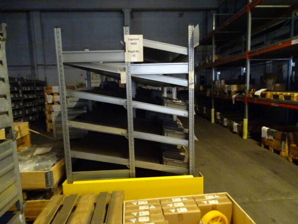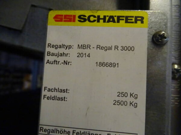SCHÄFER MBR R 3000 Durchlaufregal mit Ständerhöhe: 230 cm | Ständerbreite: 1580 cm | Traversenlänge: 1290 cm | Baujahr 2014| Felder: 5 | Ebenen: 5 | max. Fachlast: 250 kg | max. Feldlast: 250 kg | Farbe: silber | Zubehör: