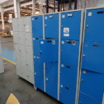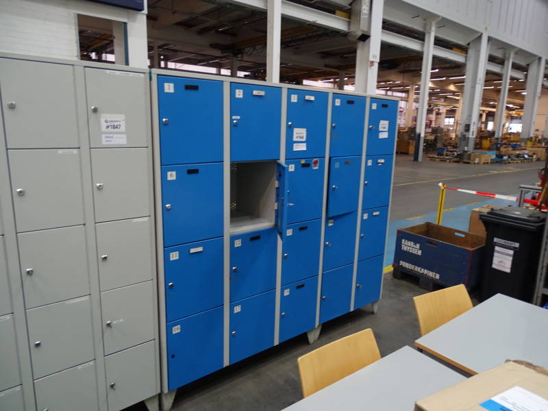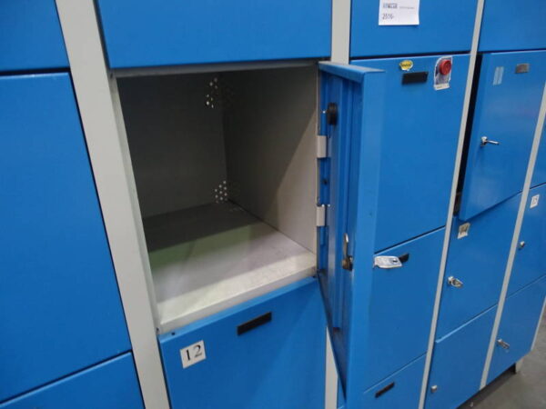 Korpus lichtgrau, Front hellblau, gesamt 12 Fächer, Breite x Tiefe x Höhe 120 x 50 x 185 cm