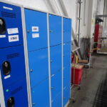 Korpus lichtgrau, Front blau, 12 Fächer, abschliessbar, Breite x Tiefe x Höhe 120 x 50 x 185 cm