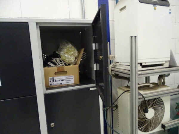 Korpus lichtgrau, Front blau, 8 Fächer, abschliessbar, Breite x Tiefe x Höhe 80 x 50 x 185 cm