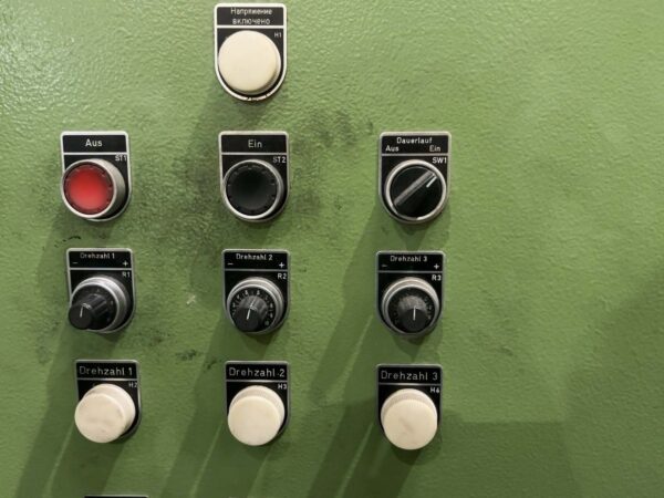 Spindelprüfstand, Maße(LxBxH): 120x75x150cm, Linker schrank: LxBxH:60cm x 50cm x 200xm; Mitte: Tisch rechts: LxBxH: 86cm x 63cm x 72cm