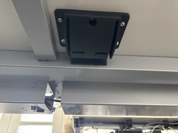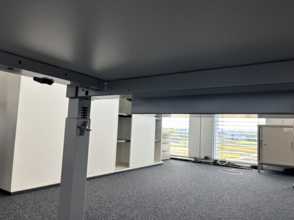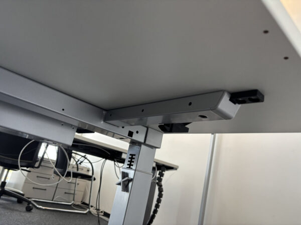 STEELCASE Activa Lift 2, elektrisch höhenverstellbarer Schreibtisch | Gestell grau | Tischplatte lichtgrau | mit Kabelführung