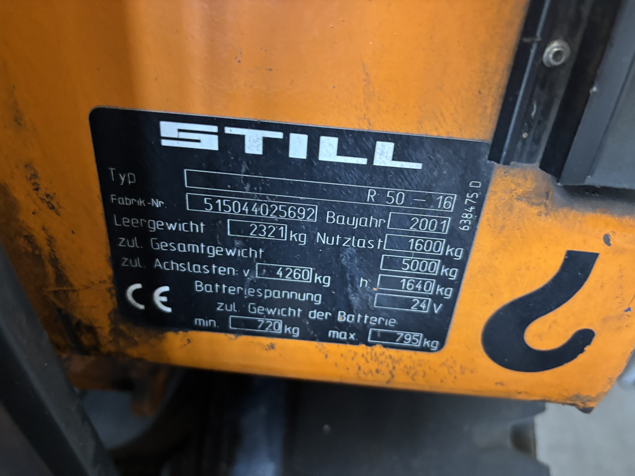 Baujahr: 2001, Serien-Nr.: 515044025692, Tragfähigkeit 1.600 kg, Triplexmast, Halbkabine, abgel.. Betriebsstd.. 23.391 h