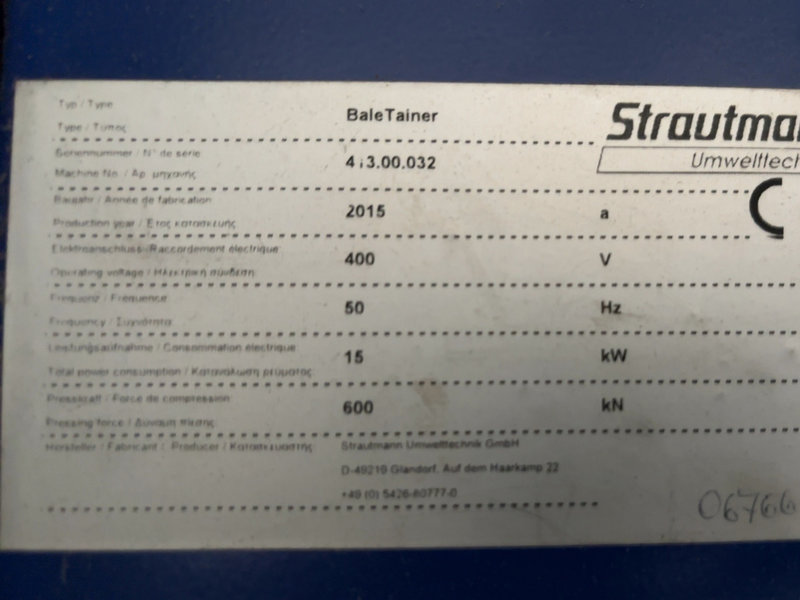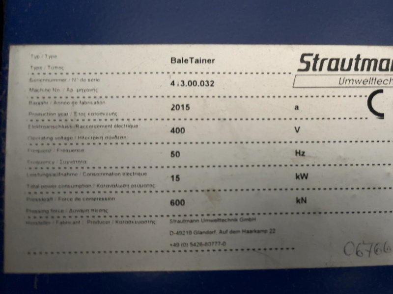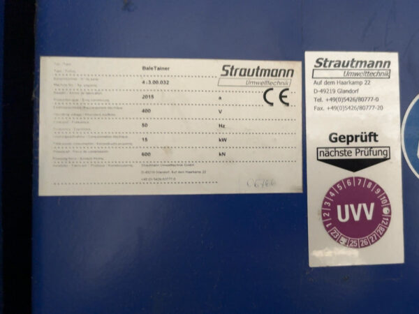 STRAUTMANN Ballenpresse , Baujahr 2015, SN 413.00.032, Presskraft 600 kN