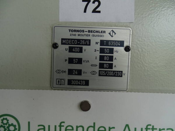 Mehrspindel-Drehautomat TORNOS MultiDeco 26/6, Nr. T 63504, Baujahr 2000, Steuerung FANUC, Späneförderer, nebst Stangenlader TORNOS Robobar MSF 832, Nr. C-15040, Baujahr 2000