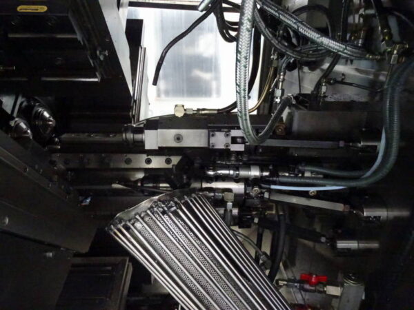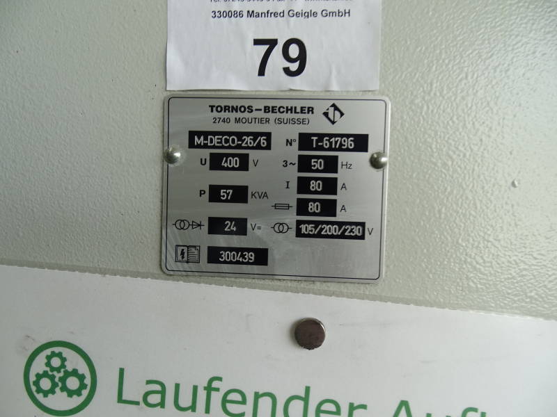 Mehrspindel-Drehautomat TORNOS MultiDeco 26/6, Nr. T-61796, Baujahr 1999, Steuerung FANUC, Späneförderer, Stangenlader IEMCA Sir 32F, Nr. 98072003, Baujahr 1998