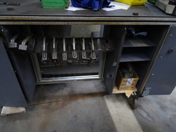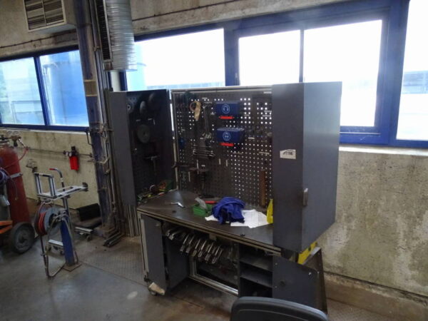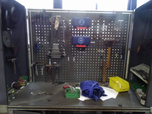 Alu/Kunststoff, Breite 140 cm, mit Aufsatzelement, Rückwand, div. Handwerkszeug, Schraubzwingen 140 × 80 × 195