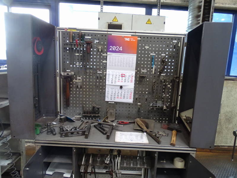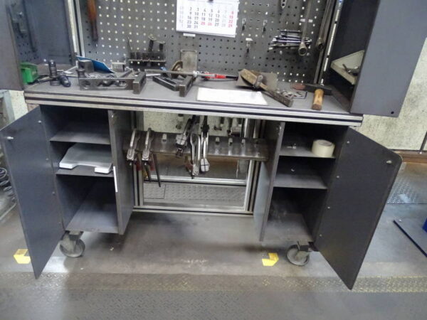 Alu/Kunststoff, Breite 140 cm, mit Aufsatzelement, Rückwand, div. Handwerkszeug, Schraubzwingen
