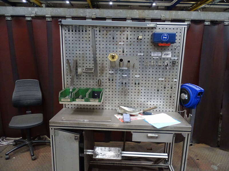 Alu/Kunststoff, mit Rückwand und div. Handwerkszeug, Länge x Tiefe x Höhe 140 x 65 x 195 cm