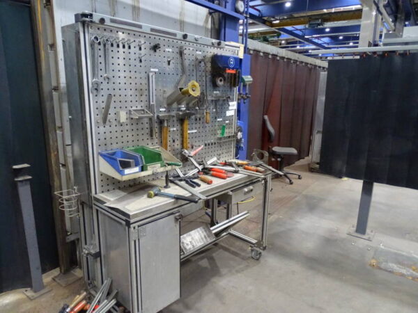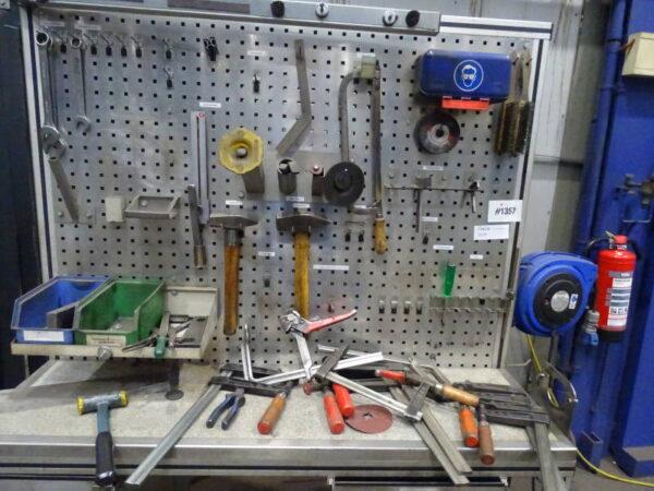 Alu/Kunststoff, mit Rückwand und div. Handwerkszeug, Länge x Tiefe x Höhe 140 x 65 x 195 cm
